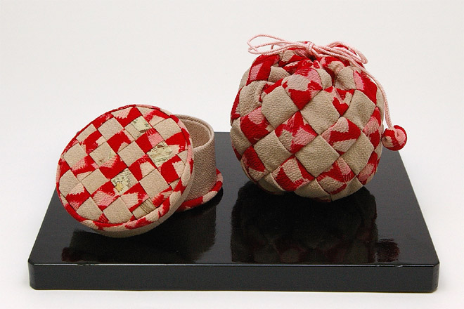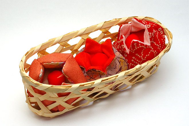 市松袋と編み籠の箱